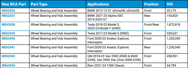 In addition to boosting coverage for more than 2.4 million electric vehicles, including expanded fitment for FWD and AWD Tesla Model 3 variants, BCA’s latest release broadens support for several high‑demand passenger, SUV, and light‑truck platforms. The new SKUs deliver fresh coverage for popular models such as the BMW X1, BMW X7, Ford Explorer, Chevrolet Express 2500, and Ram 1500 Classic. These additions reinforce BCA’s strength in serving a diverse and growing segment of the aftermarket where long‑term service life and replacement demand remain strong.